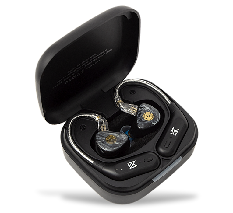 The KZ AZ09 package includes two adapter modules, one for the right ear, one for the left. You plug an adapter into each earphone, and the earphones should work like any standard true wireless earphones—except that there’ll be a receiver/battery module hanging behind your ear, kind of like many hearing aids. The modules include the standard SBC Bluetooth codec plus AAC.