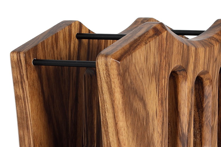 Although the Euterpe has an old-world vibe that makes it look like something a bishop would use to hold his miter, it actually is designed to serve as a headphone stand. Your headphones fit right on top, with a shallow saddle cut into the wood to keep the cans in place. Don’t run the amp with the headphones in place, though, as the heat from the tubes could damage the headband.